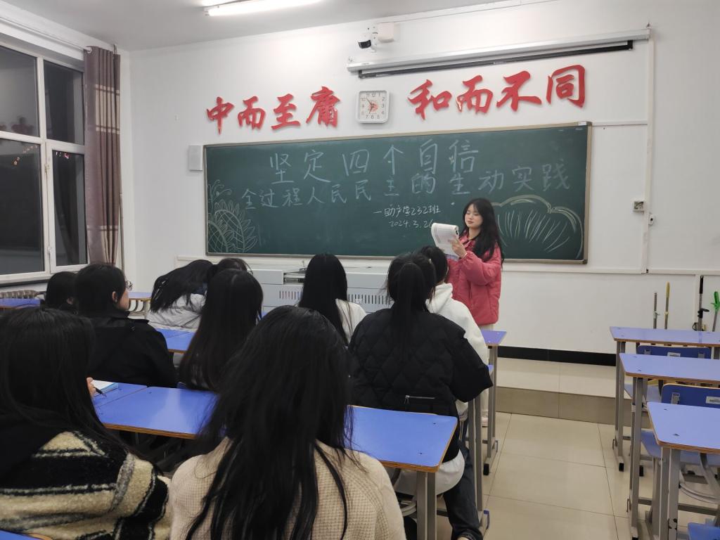 中国特色社会主义进入了新时代,我们应当坚定四个自信。为此,2024年3月26日助产学232班组织开展“坚定四个自信--全过程人民民主的生动实践”主题团活。本次团活由团支书王婷组织开展,助产学232班全体同学参与。