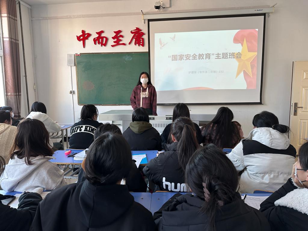 2024年3月25日,于1#1304开展”国家安全教育”主题班会。由班长肖紫玲主持,本次班会为护理学(专升本二年制)232班全体同学参加。