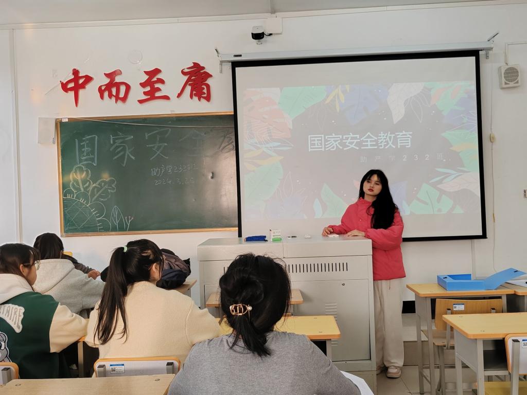 为了高学生国家安全意识、增强国家安全素养的教育活动。为此,2024年3月25日,助产学232班组织开展“国家安全教育”主题班会。本次班会由团支书王婷组织开展,助产学232班全体同学参与。