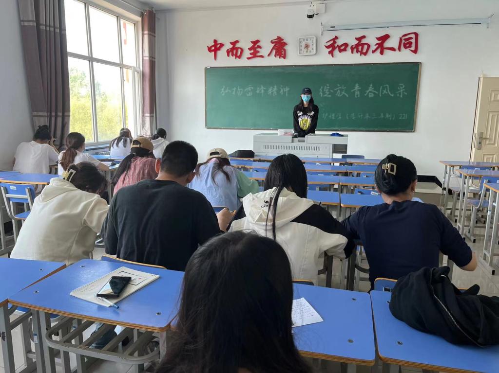 会议开始,团支书郭雨诺介绍弘扬雷锋精神是中国传统美德的集中体现,是一种以助人为乐、无私奉献、热爱集体、勇于担当为核心的精神。在当今社会,弘扬雷锋精神,不仅有助于培养同学们的道德品质,也有助于营造良好的社会氛围。