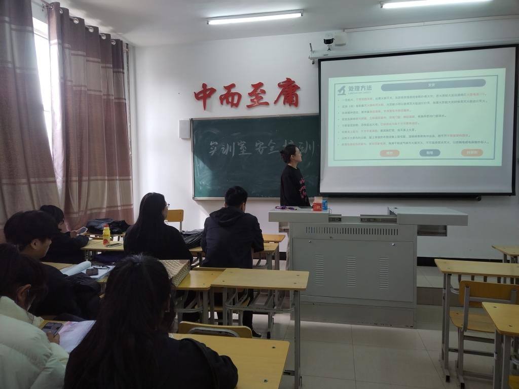 本次班会由班长刘金迪组织开展。首先,介绍了实验室事故类型,包括火灾、爆炸、触电以及针刺伤。然后,班长刘金迪告诉同学们要掌握丰富的安全知识,严格遵守操作规程和规章制度,经常保持警惕,事故就可以避免。如果预防措施可靠,发生事故后处理得当,就可以使损害减低到最小程度。最后,班长刘金迪讲解了实训室的基本安全守则、灭火器的使用以及实训室课后垃圾处理。
