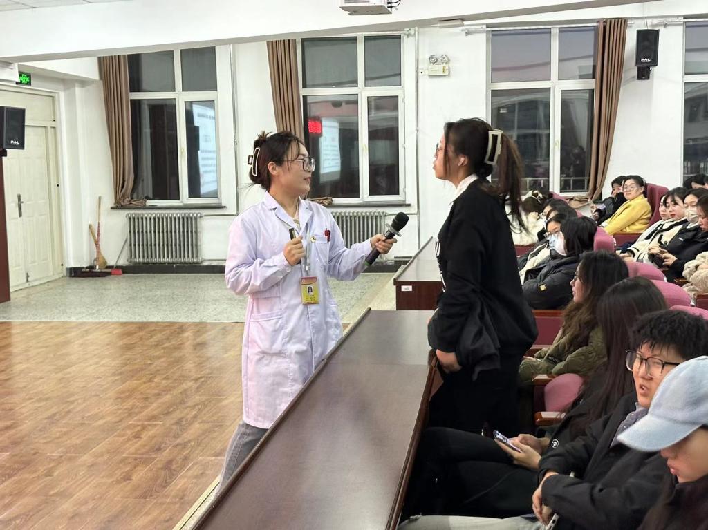 讲座围绕女性健康、六大生理特点、经期慎用“三类药物等六方面展开科普。讲座开始,燕越颖老师通过短视频展现女性从新生儿期到老年期之间的一系列变化,向同学们讲述了女性一生六大时期的生理特点。同时告诉同学们女性在生育期后,乳腺、宫颈是每个女人最应该悉心呵护的部位。随后燕越颖老师为同学们解释女性在经期时不能使用抗凝药或抑制血小板功能药物的原因。讲座过程中,同学们踊跃回答燕越颖老师提出的问题,并且积极向老师提出疑问。刘晓懿老师围绕女性最脆弱的部位这一话题与同学们交流互动,通过日常乳房保健知识来教女同学们如何保护乳房。随后刘晓懿老师讲解了女性高危疾病的症状,预防措施以及健康的生活方式。例如女性疾病:宫颈癌,人乳头瘤病毒。如果得不到重视和及时治疗,会对生命造成威胁。讲座最后,刘晓懿老师通过六道题抢答的方式,让同学们回顾女性安全健康护理知识,提醒大家平时要注重关爱自己,养成健康的生活习惯,保持良好的生理和心理状态。讲座结束,主持人为积极参与的同学们分发了礼物。