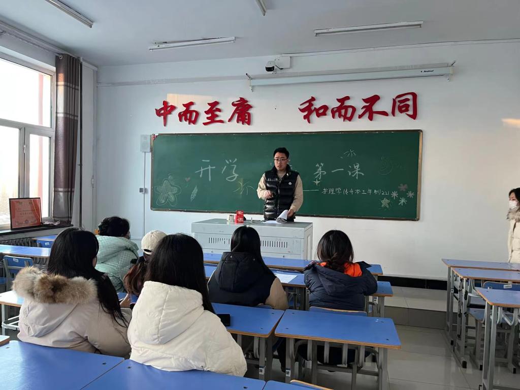 会议开始,辅导员姜宏伟老师首先向同学们介绍本学期的课程安排和学校相关规定。随后,辅导员姜宏伟老师引导学生们讨论了新学期的学习计划和目标,并为之努力奋斗。
