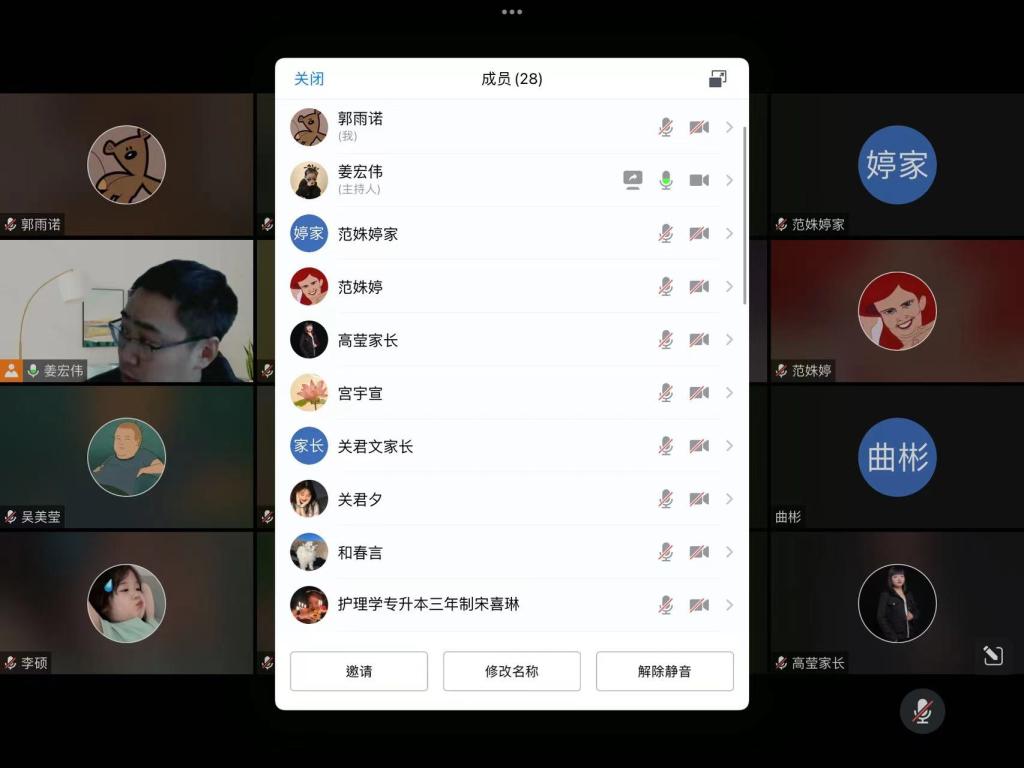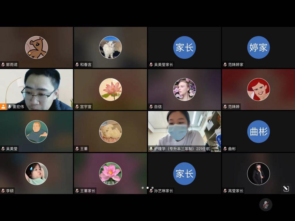 最后,辅导员姜宏伟老师通过本次线上云家长会,希望在各位家长的激励下,使同学们圆满完成本学期的各项任务,也预祝同学们取得优异成绩的同时,多积累知识,也祝同学们今后的学生生涯越来越从容,越来越坦然。