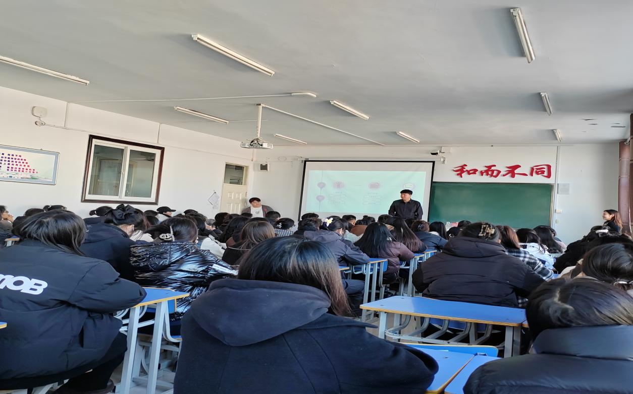 会议伊始,辅导员隋钰慧全程主持并邀请单大海老师共同参与,辅导员隋钰慧向同学们介绍了新学期的课程安排,并以理想信念、校园安全、学风建设、生涯规划等四个方面详细向同学们介绍了新学期新安排,使更加明确了新学期的目标和方向;专业长单大海着重强调了在校的文明礼仪,通过礼貌行为来建立良好的人际关系。