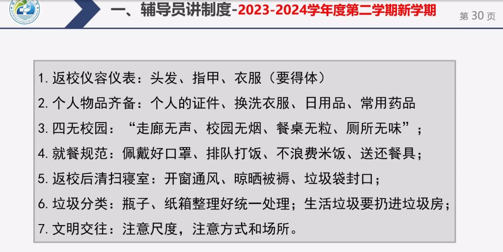 云家长会暨云班会中,生涯导师代表刘瑞老师围绕生涯导师是做什么的、社会实践学期需要完成的内容与全体学生及家长进行了互动和交流。会议最后,赵勇老师向全体学生讲解新学期开学时间、德育学分管理办法、四无校园等日常管理要求,并强调新学期学习、提前就业的重要性,建议全体同学树立正确的学习观、成才观、职业观、就业观,拒绝“等、靠、要”的思想观念;适时调整择业预期,抢抓机遇,优先高质量就业。一是分析自身优势,制定好新学期的目标;二是提前踏实复习挂科的课程,把握住补考的机会;三是在实习中多积累、多反思,不断提高自身技能与阅历;四是科学自我评估与职业定位,做好职业选择与规划,把握就业机遇,实现自身价值。
