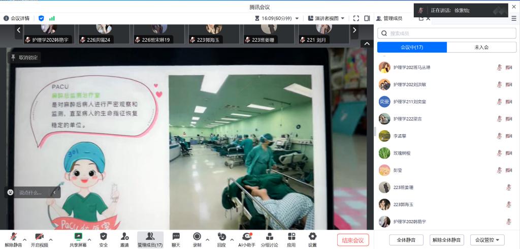 为促进即将毕业的护理学2020级与专升本2022级学生找到合心意的工作,生涯导师李婷婷于2024年1月28日组织召开线上学长分享会,邀请现就业于北京301解放军总院麻醉手术中心,护理本183班徐紫怡做工作经验分享,特邀护理本18级辅导员刘丽娜老师参加。