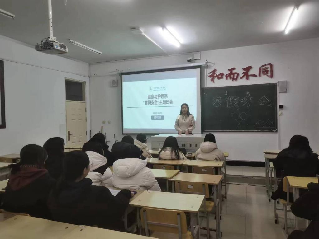 为使同学们在寒假期间加强安全意识和自我保护意识,护理学(专升本二年制)237班于2023年12月27日在1#1202组织开展“寒假安全教育”主题班会。本次班会由辅导员隋玉慧主持,护理学(专升本二年制)237班全体同学参加。