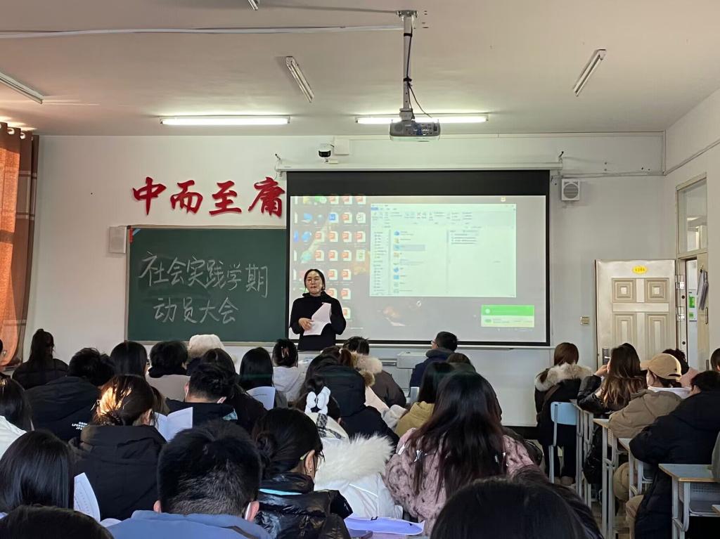 会议伊始,辅导员江丽娜为同学们简单讲解社会实践学期,帮助同学们解开对社会实践学期的疑惑,随后详细讲解了大三年级社会实践作业的各项要求。会议进行中,辅导员江丽娜表明同学们一定要认真对待社会实践假期作业,严格要求同学们身体力行认真完成实践作业,如有问题随时跟生涯导师反应,避免挂科。会议最后,专业长表示同学们在社会专业实践过程中要注意个人安全,把安全放在首位,发扬学校精神,锻炼综合素质,提高自己的社会实践能力和综合能力,为未来的工作打好基础。