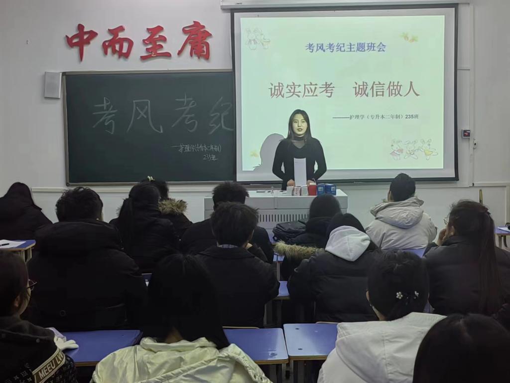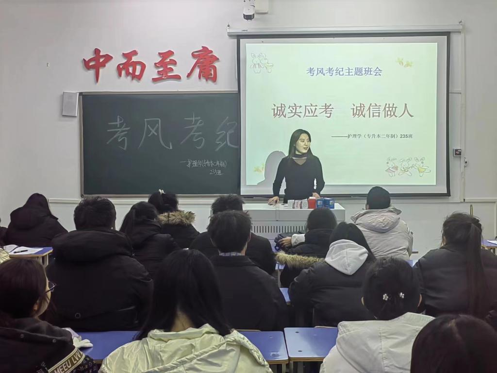 2023年12月13日,护理学(专升本二年制)235班在1#1207组织开展“寒假安全”主题班会,此次会议由辅导员隋钰慧主持,本次会议由护理学(专升本二年制)235班全体成员参加。