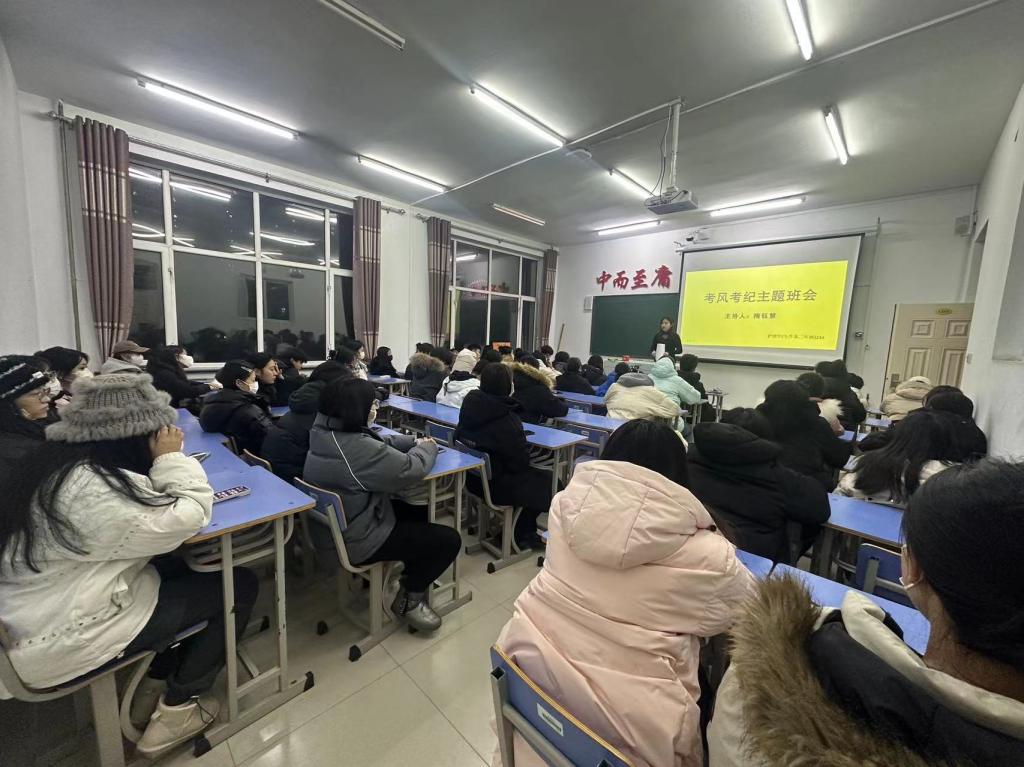为让同学们端正考试态度,加深对考试舞弊带来的严重后果的认识,杜绝考试舞弊行为的发生。为此,2023年12月13日,护理学(专升本二年制)234班于1#1205组织召开“考风考纪”主题班会,本次班会由辅导员隋钰慧主持召开,护理学(专升本二年制)234班全体成员参加。