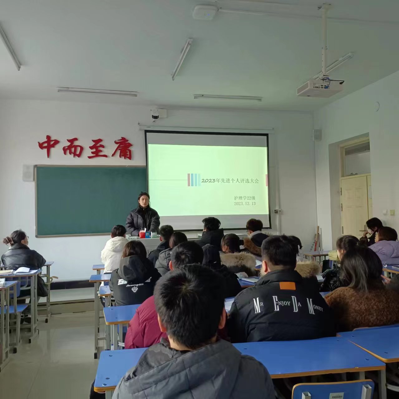 为确保各项教育教学工作的有效开展,明确奋斗目标,凝聚教师力量。于2023年12月13日,在1#1203召开“先进个人评选”为主题的班会,本次会议由辅导员李安琪主持,护理学221班全体同学参加。
