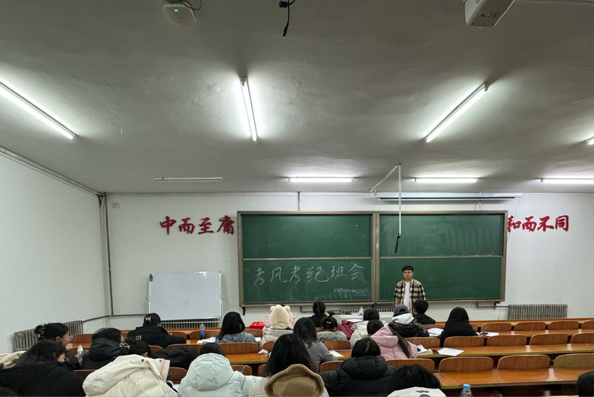 会议伊始, 学生辅导员孙程无忌介绍了考风考纪的定义和重要性,学校管理对考风考纪的要求,考试前的准备工作,定期复习和课后作业的重要性,考试前的合理规划和准备,对考试要求和规则的了解,考场纪律要求,考场规则的介绍和解释,监考人员的权责和学生的义务,违规行为的划分和相应的惩罚,考试过程中的行为规范,不得、抄袭等违规行为,不得以欺骗等手段获得不正当的成绩,不得干扰他人的考试或者有意破坏考试秩序,考试后的处理和反思,自查自纠的重要性,对于考试成绩和失误的认真对待。