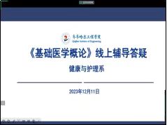 临近期末,为了帮助学生期末复习更有方向和质量,2023年12月11日晚20:00通过腾讯会议开展了以“《基础医学概论》《组织胚胎学》线上辅导答疑”为主题的会议,本次会议由苏森森老师主持,全体学生参会。