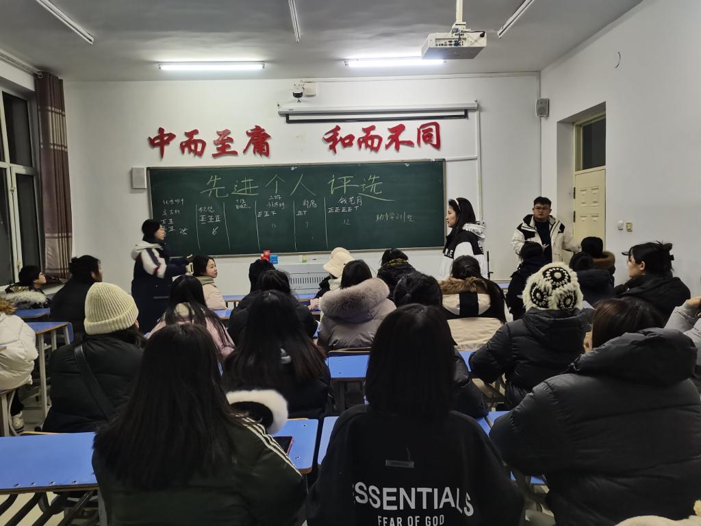 会议伊始,辅导员江丽娜宣读了本次评选先进个人的相关要求及注意事项,希望同学们在评选中坚持公平、公开、公正。随后辅导员江丽娜结合对学生的思想品德、学习成绩、课外活动等方面进行综合考评,同学们开始匿名投票,由宋美龄、团支书钱艺月进行计票。最后,由李梦烨公布评比结果,本次评选大会圆满完成。