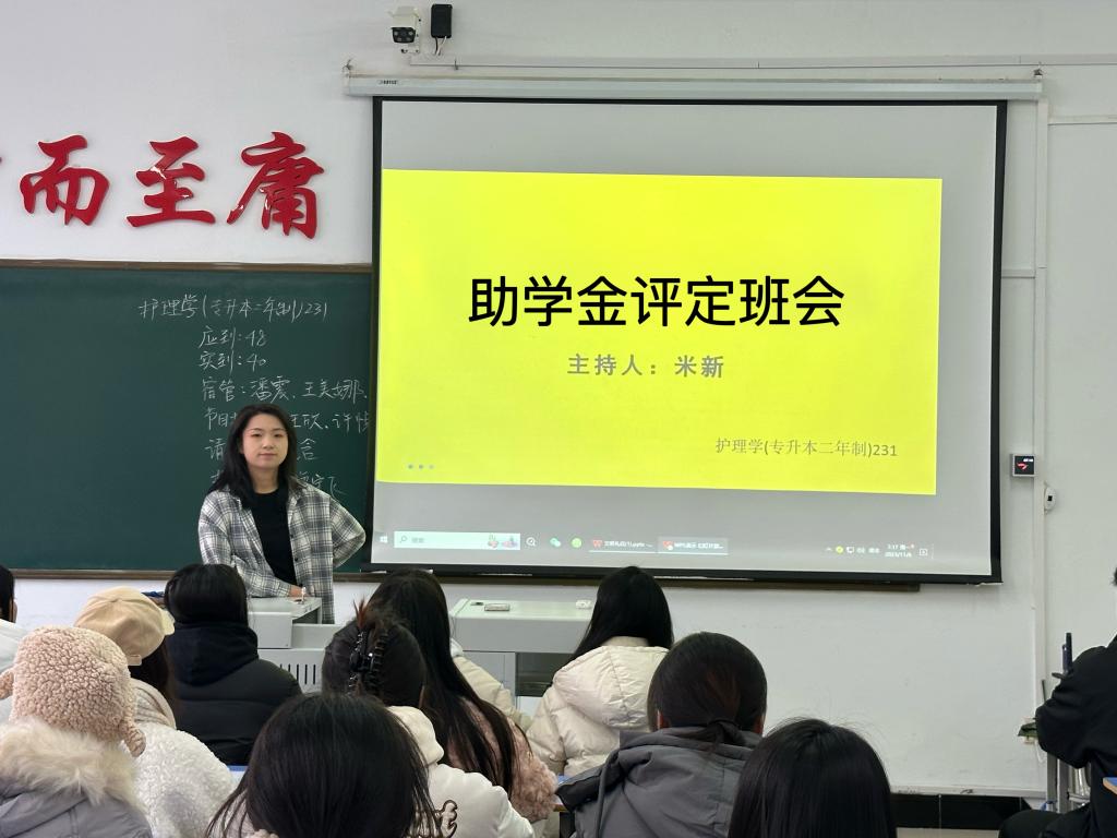 做好助学金的评选工作,是每个高校的重要工作内容之一,也是每一位学生管理工作必须高度重视的工作。助学金资助的对象是贫困生,如何评定贫困生是做好评选工作的重要前提和重要依据。2023年11月28日,护理学(专升本二年制)231 班于 1#206组织开展 “助学金评定” 主题班会。本次班会由辅导员米新主持召开,护理学(专升本二年制)231 班全体成员参加。