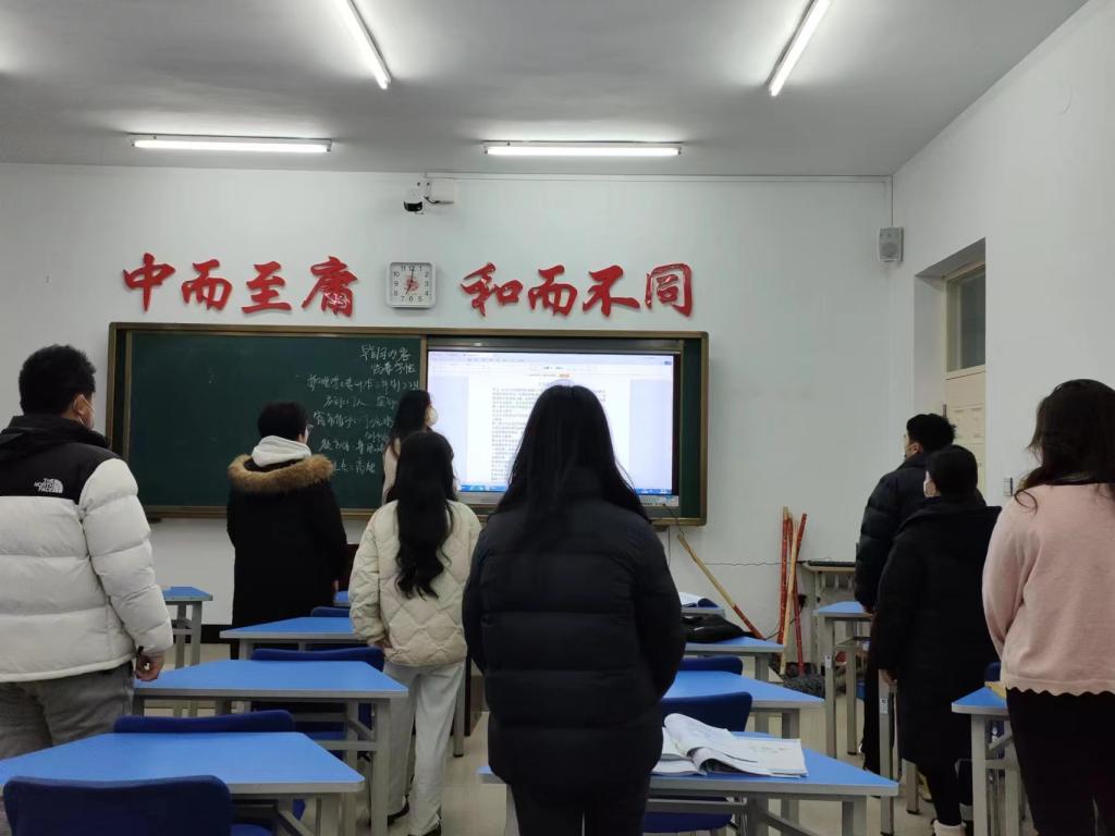 活动伊始,团支书刘子琪为同学们播放宣传片,导入主题,讲解什么是“一二四”法制宣传日,带领同学们进行“宪法晨读”环节,组织同学们站立,跟读晨读内容,加深同学们的印象。