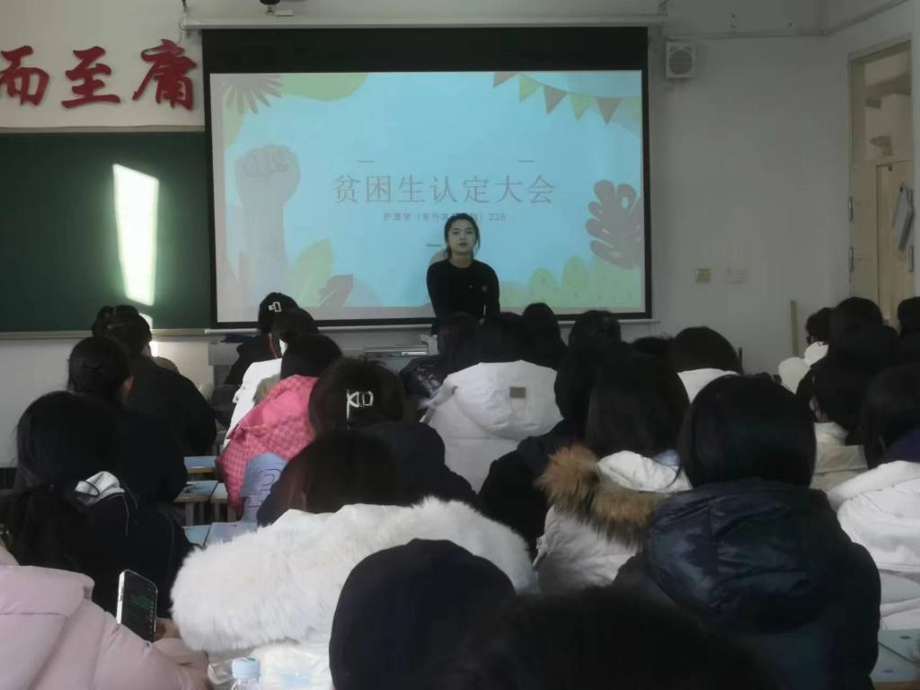 会议伊始,米新老师向同学们讲述了贫困生认定的意义。贫困生认定是国家为了保障家庭经济困难学生接受平等教育而实施的一项重要政策,也是高校教育公平、公正的重要体现。因此,贫困生认定具有重要的现实意义和深远的历史意义。此后米新老师又向同学们公布了贫困生认定基本条件。其中包括:家庭经济困难,生活俭朴,学习认真,遵守校规校纪等。认定标准主要包括家庭经济状况、家庭人口情况、家庭收入情况、学习情况等。具体标准将根据国家政策和学校实际情况制定。在辅导员米新老师讲解结束后,进入班级同学提问和互动交流环节。同学们可以就自己关心的问题向辅导员米新老师进行提问,也可以与其他同学进行交流和讨论。通过互动交流的形式,让同学们更好地了解彼此的情况和需求,相互学习、共同进步。至此,本次会议圆满结束。