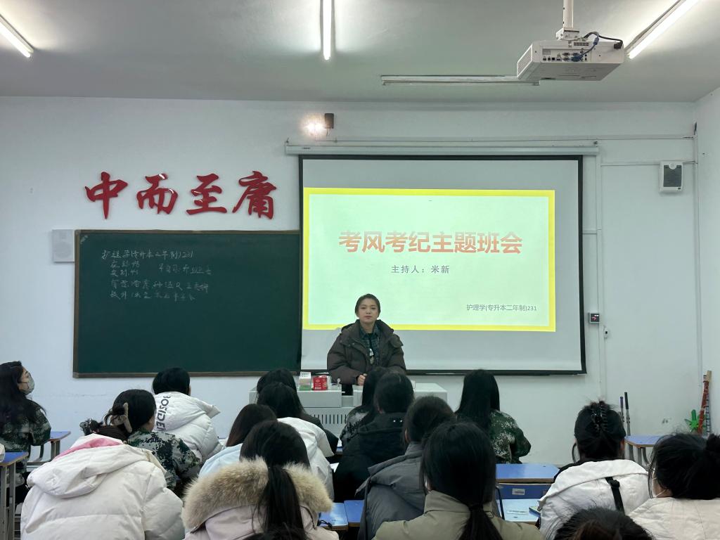 考风考纪是学校管理的重要方面,通过开展主题班会,加强学生对考试纪律和道德规范的教育,有助于提升整体考试素质和学风建设。2023年11月24日,护理学(专升本二年制)231 班于 1#206组织开展 “考风考纪” 主题班会。本次班会由辅导员米新主持召开,护理学(专升本二年制)231 班全体成员参加。