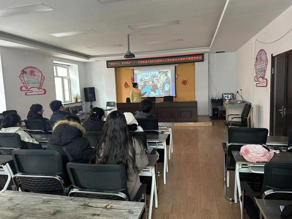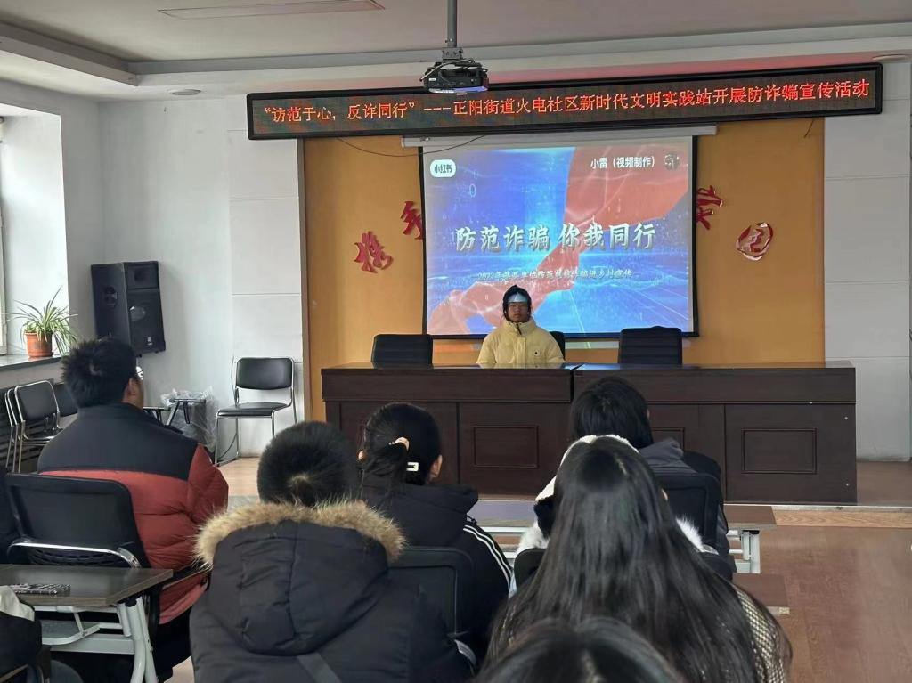 活动伊始,青工委员赵薇同学与火电社区取得联系并确定具体人数和时间,赵薇同学带领同学们在规定日期到达社区开始此次活动,首先由护理学232班孟子墨同学讲述此次活动为了增强居民们的反诈意识的目的,其次通过孟子墨同学所做的ppt幻灯片放映形式讲述日常生活中会遇到的诈骗类型,以及新型诈骗案例,最后讲述了如何防范诈骗事件的发生,遇到诈骗短信以及电话是应该如何处理。