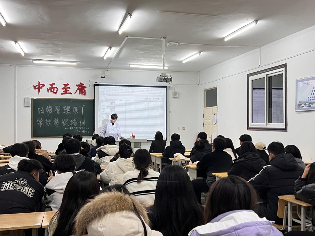 为了提升新生班级的日常管理水平,帮助新生们更好地适应校园生活,理解并遵守学校的日常规范,提高自我管理能力。我系于2023年11月13日在1#1301组织日常管理及常规培训,本次会议由权益部部长杨志强主持,参与人员为健康与护理系23级各班班长、学委、生委。会议全员到齐且进展顺利。
