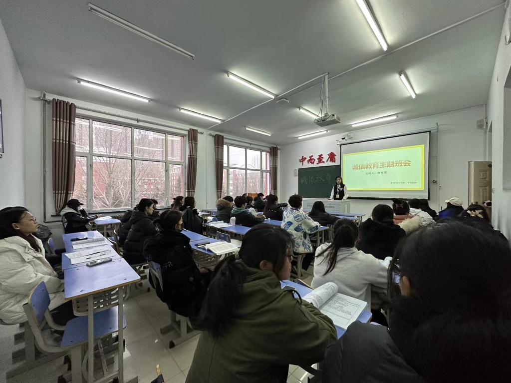 会议伊始,由辅导员隋钰慧引入正题,讲诚信是人们生活交流的桥梁,是工作和学习的前提,随后,向同学们强调诚信的重要性,诚信不只体现在的大事上,还体现在学习中的小事里,考试中要做到不违反纪律,不作弊,诚信做人。认识诚信的基本要求是对人守信,对事负责,感受诚信是每个人立足于社会的通行证。
