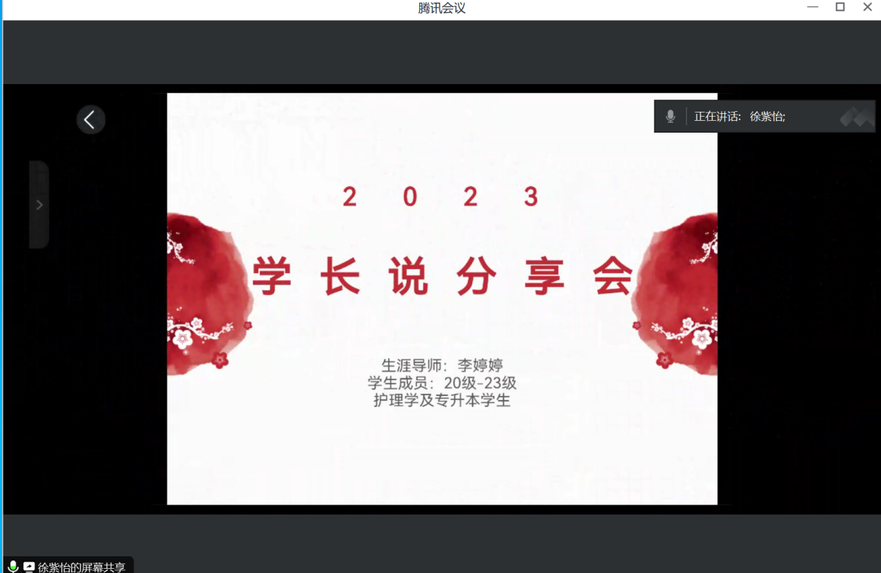生涯导师李婷婷老师邀请护理学2018级徐紫怡同学,现就业于中国人民解放军总医院手术室,为20级-23级护理学及专升本共计34名同学,做工作经验分享会。