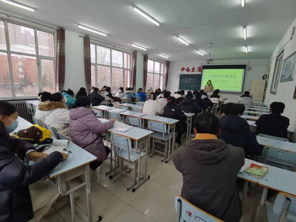 会议伊始,辅导员隋钰慧为同学们介绍了什么是三五能力,对三五能力的重要性进行了强调;其次,辅导员隋钰慧为大家解读了每个人都要学会三五能力的意义和原因;强调三五能力要进行终身学习,将我们每个人都锻炼成一个全面发展的人才。