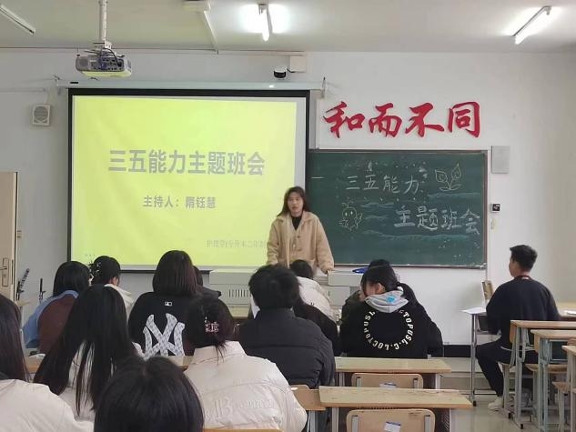 2023年11月6日早7时许,护理学(专升本二年制)237班在1#1202组织开展“三五能力”主题班会。本次班会由辅导员隋玉慧主持,护理学(专升本二年制)237班全体同学参加。
