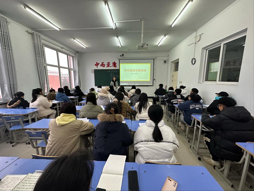 会议伊始,辅导员米新通过以下几点向同学们介绍学风建设,学习氛围:每名同学应该更加积极的参与学习,在没课的时候可以组团去图书馆读书。端正态度:作为一名大学生,我们应该端正对待每一节课,保持不翘课,上课不玩手机,自觉听老师讲课。保持清醒的头脑:早自习之前规划好:今天我要做什么,怎样才能效率最高。作好学习规划:一天下来,把老师布置的作业做一个具体的实施措施,有条不紊的按计划进行。