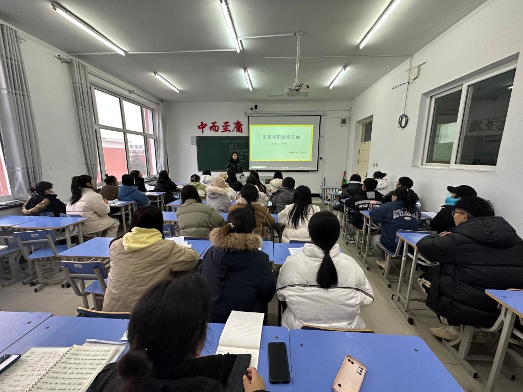 会议伊始,辅导员米新从常规常识教育守则来介绍,例如遵守纪律:学生应遵守学校的各项纪律和规章制度,如宿舍作息、考勤等。尊重他人:学生应尊重师长、同学和他人的权益,不言语和行为上的侵犯他人。准时上课:学生应准时参加课程,并尊重教师的教学安排。如有意外情况,应提前请假。注意礼仪:学生应保持良好的仪表和举止,穿着整洁得体,不随意涂写和破坏校园环境。健康生活:学生应保持健康的生活习惯,注意饮食营养,适量运动,保证充足的休息。
