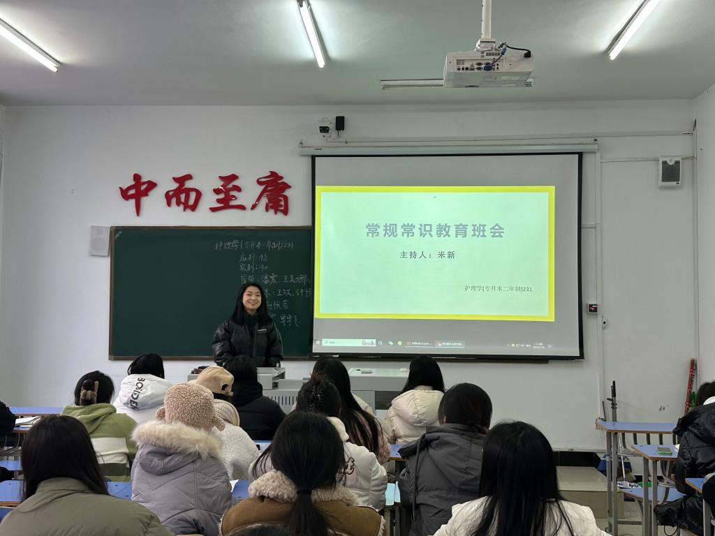 大学生必须遵守的、形成的各种良好习惯,就便成了〝常规”。良好的常规有利于大学生更好的学习和生活,创造了良好的环境。2023年10月30日,护理学(专升本二年制)231班于1#206组织开展 “常规常识教育” 主题班会。本次班会由辅导员米新主持召开,护理学(专升本二年制)231班全体成员参加。