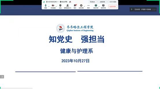 10月27日晚,苏森森老师通过腾讯会议形式召开了2023-2024学年第一学期“知党史,强担当”为主题的线上。全体生涯学生参会。
