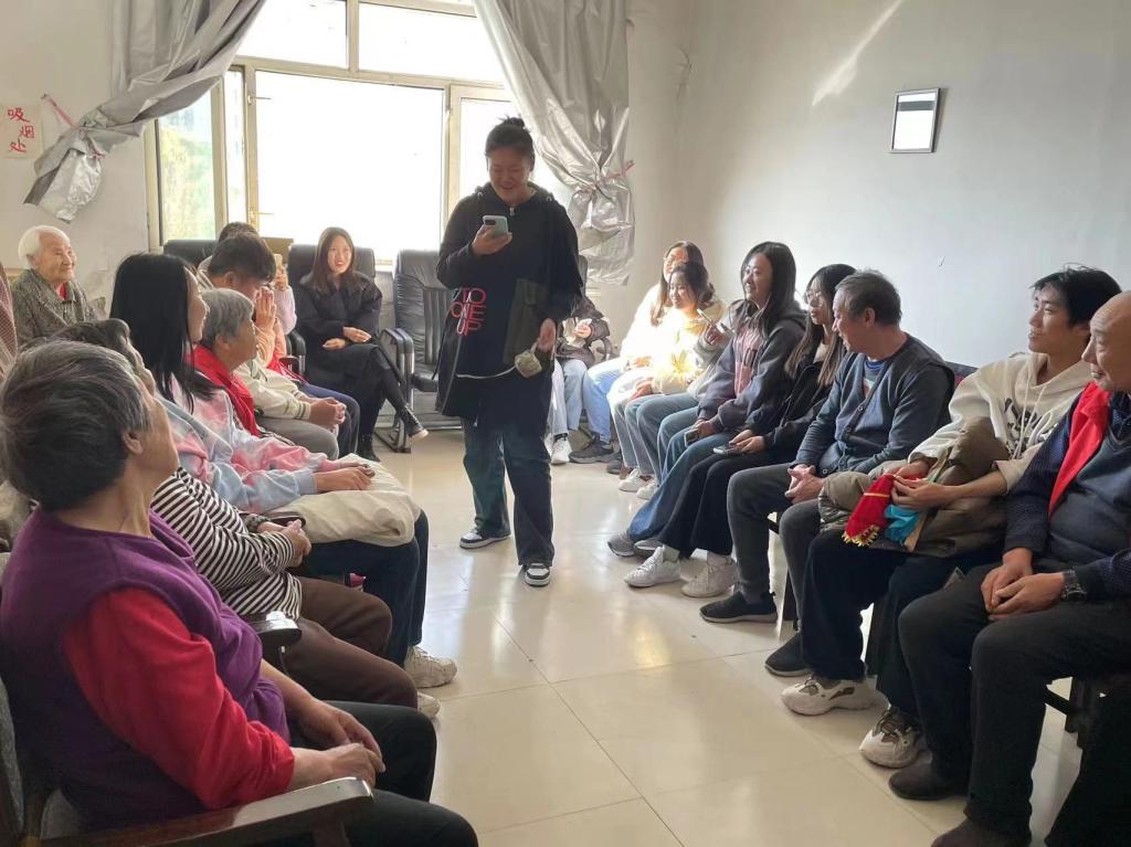 活动伊始,首先分成小组形式,第一组同学慰问久病卧床的老人,第二组同学参与到每日打扫中清理落叶灰尘中,第三组同学们都能歌善舞,为老人们表演,唱歌、跳舞、二人转等节目。最后老人们给同学们讲述了老人们八九十年代的生活。时间很短暂但是故事很精彩。