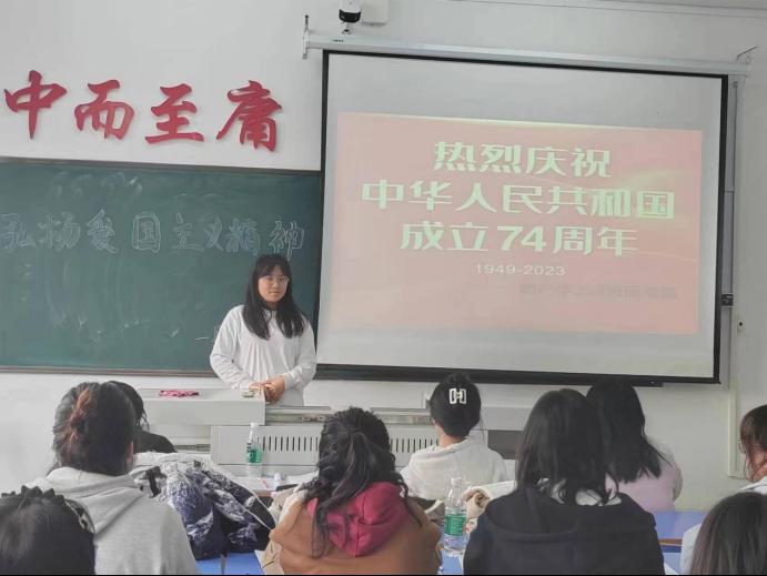 助产学222班于2023年10月20日早上10:30点在1教1303开展了“弘扬爱国主义精神”主题团口活动,本次会议由团支书毕明阳主持,助产学222班全体同学参加,共计41人。