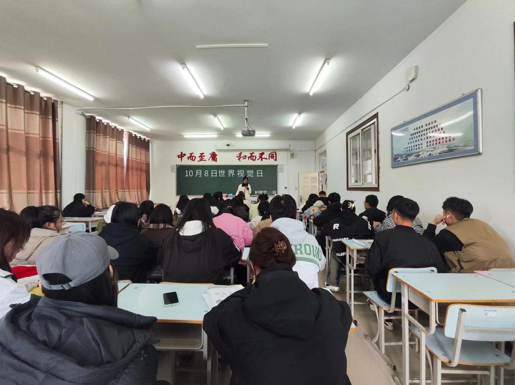 为进一步普及科学用眼知识,提高近视防控意识,培养良好用眼习惯。护理学222班于2023年10月20日12:00在1#1201组织开展世界视觉日主题团会。会议由团支书李圆圆主持,护理学222班全体同学参加。