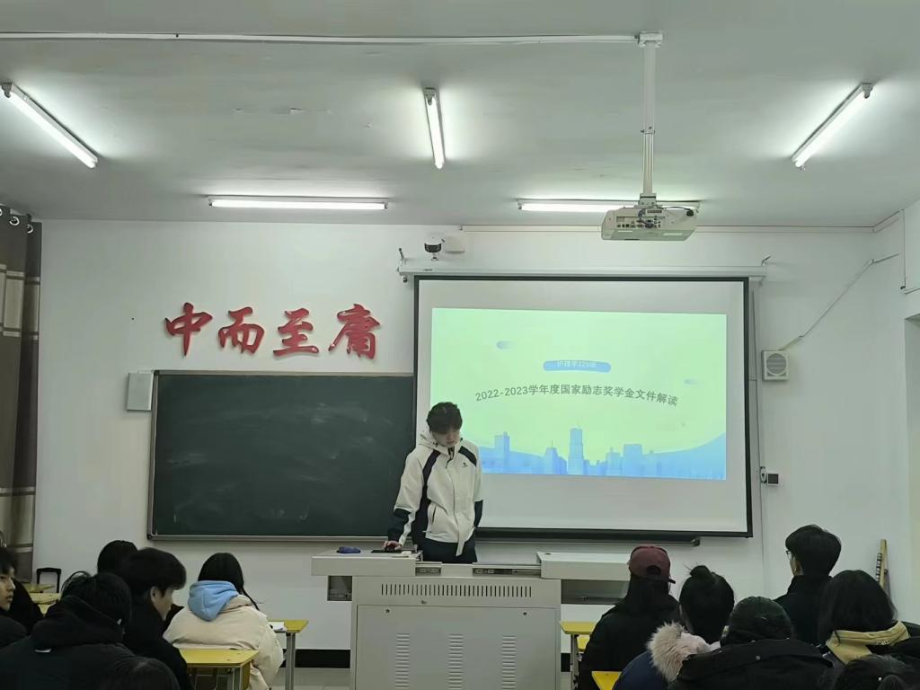 会议开始,班长徐光宇详细解读了相关文件内容,从个人基本信息、思想状况、学习成果、获奖情况等多个方面阐述了评定细则。接着,他对国家励志奖学金评审的相关规定和要求进行了详细说明,并对评选指标的分配情况进行了解释。此外,他还介绍了获得奖学金的同学在班级内的学业排名,让同学们对每一个评选对象的实际情况有了深入了解,从而确保了评选过程的公平、公正、公开。会议最后,班长徐光宇进行了总结。他强调,国家励志奖学金评选工作要严格遵守“公平、公正、公开”的原则,深入细致地了解家庭经济困难学生的实际情况,对拟资助学生进行资格认定和资助等级标准评审,确保国家政策真正惠及有需要的学生。