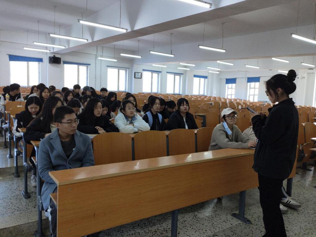 会议伊始,团支书李圆圆传达了2023年度团员发展工作的通知,我校将结合实际情况,按照“总量调控、优中选优、严把入口、规范程序”的要求,统筹安排我校2023年度发展新团员工作。随后,团支书李圆圆分别从发展指标、基本条件、入团流程及工作要求等方面为同学们解读文件的具体内容。在此过程中,团支书李圆圆着重强调了入团的基本条件。申请入团的学生要具备较高的思想觉悟和端正的入团动机,自觉遵守我校规章制度,且无违纪、扣德育学分等情况。同时,发展入团前须参加不少于8学时的团课学习且团课学习合格,参加年度志愿服务时长不低于20小时。青年大学习学习率达95%以上,方可申请入团。最后,团支书李圆圆希望符合要求的同学积极报名,并提醒同学们认真填写信息登记表,早日成为中国共产主义青年团的一份子。
