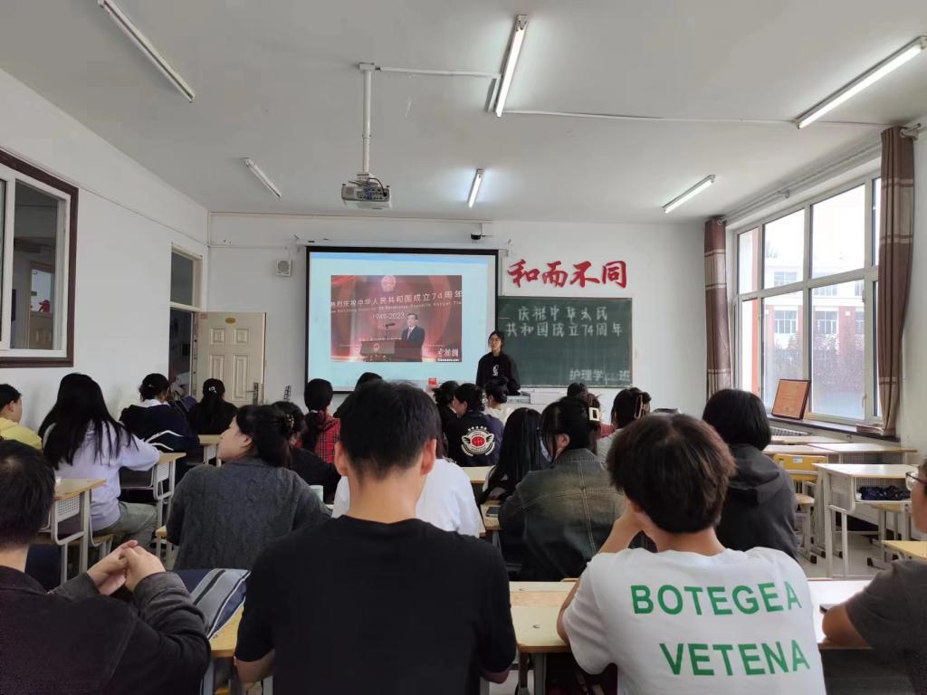 为隆重庆祝中华人民共和国成立74周年,引导广大学子厚植家国情怀、坚定理想信念。2023年10月9日,护理学222班在1#1201组织开展庆祝国庆74周年主题团会,会议由团支书李圆圆主持,护理学222班全体同学参加。