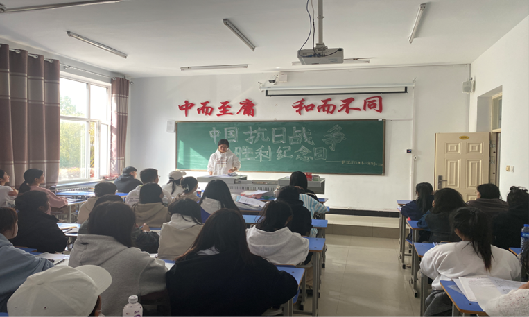 活动伊始,团支书陈悦涵先后介绍了一系列重大历史事件,讲述了一个个革命先烈的英雄事迹。同学们认真倾听,牢记这段艰难的历程,感受到抗日英雄的伟大,大家缅怀先烈,向每一位抗日英雄致敬。随后同学们也谈了自己的感受。学习委员吕思萌说,通过这次主题团日活动,我们回顾了抗战的艰难历史,体悟到英雄们尽忠报国、舍身为民的民族精神与气节。金鑫玉同学说纪念是为了更好地铭记历史,生活在和平年代的我们,要向英雄学习,从小事做起,自觉将这份爱国之情落实到行动中。最后团支书陈悦涵带领同学们合唱“强军战歌”。至此,此次团活到此结束。