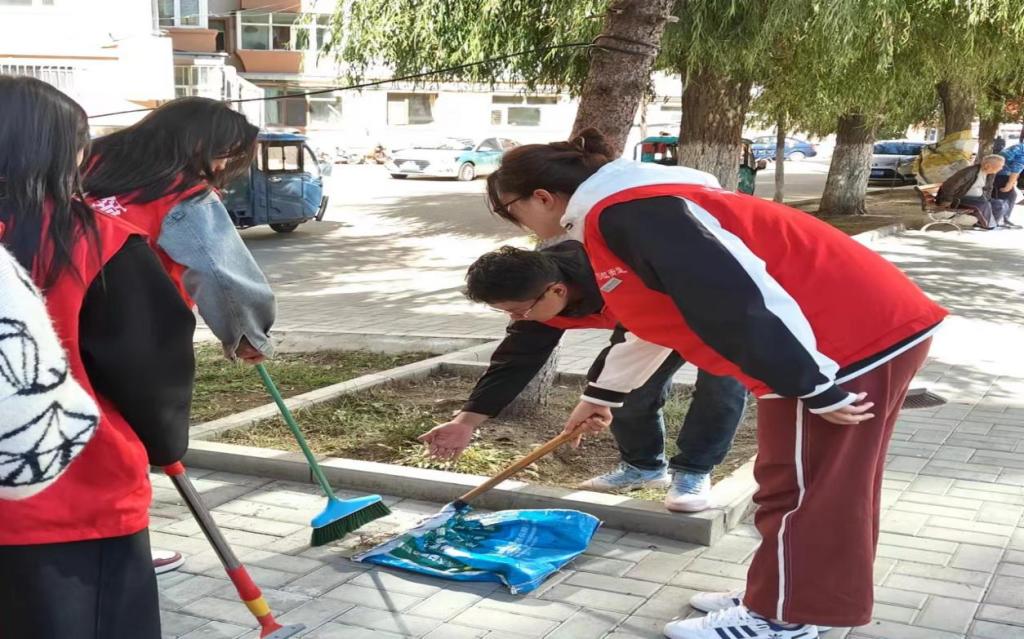 活动伊始,同学们清扫社区地面碎纸削。其次在社区取刮板清理墙上无用广告等恶意粘贴的纸条,同学们清理绿植中的垃圾。活动最后团支书吴冰倡议同学们在未来的生活中要爱护环境营造干净整洁的生活环境。