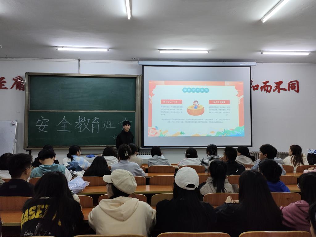 会议伊始,班长王斌组织同学们进行假期安全主题演讲。同学们自身体验与感悟,声情并茂、慷慨激昂地述说着自己对安全的深刻理解,同时分享了生活中各种安全问题和解决方案,并提出了一些建议。随后,班长通过具体事例对同学们进行交通安全、用电安全、财产安全、饮食安全、网络安全等知识的宣讲,引导同学们提高防诈骗、防溺水的思想意识。其次,班长强调了寝室卫生问题。假期离校前整理宿舍内务,关好门窗,大量现金及贵重物品需要妥善保管。同时,特别注意用电安全问题,离寝时需关闭总电源,做到人走断电,消除安全隐患。最后,班长王斌提醒同学们,回家途中和返校途中,及时与家人联系,确保人身安全,按时到家和按时返校。希望同学们秉持安全离校,安全返校的原则,度过一个平安愉快的中秋国庆假期。