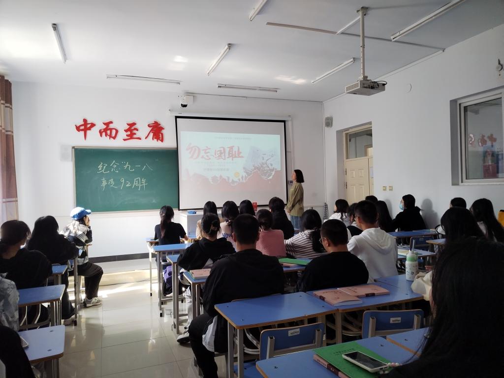 活动伊始,由团支书徐鹤育带领同学们齐唱的国歌,其次,团支书徐鹤育告诉同学们要铭记国耻,九一八事变是中国近代史上的一次耻辱,无数中国人民遭受了巨大的痛苦。我们要深刻感受到中国人民的苦难和抗争精神,铭记历史的悲惨,从而更加珍惜现在的和平与稳定。最后,团支书徐鹤育告诉同学们只有铭记国耻,才能够更好地传承民族精神,激发爱国情感。我们更应该坚守文化自信,保护好自己的文化遗产。通过加强对中华民族历史、文化和传统价值的学习,我们可以更好地传承和弘扬中华民族的文化精神,树立起世代相传的中华民族文化自信。