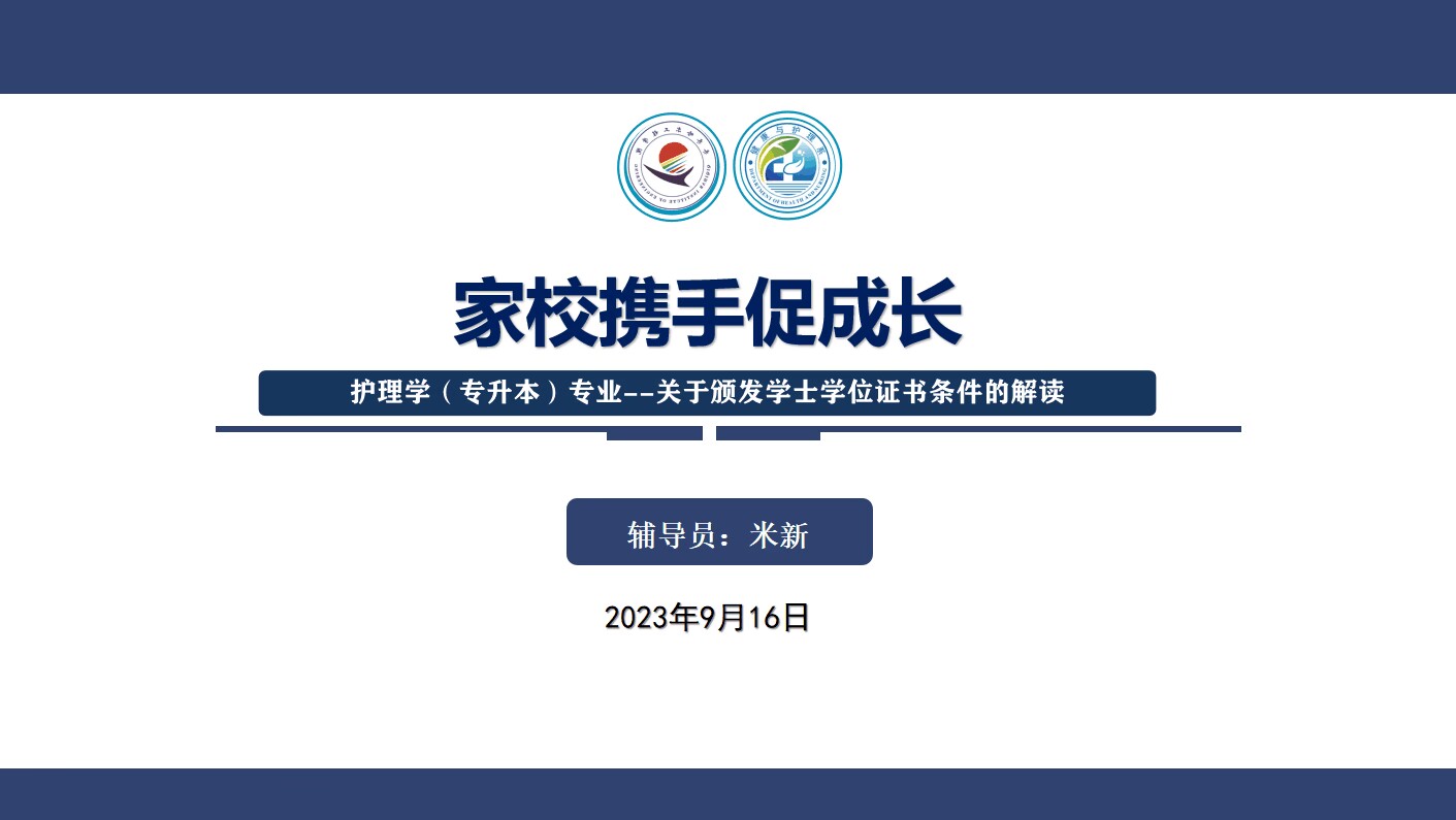 为使家长了解学校为学生颁发学士学位证书的条件,进而督促学生努力学习,积极进取。2023年9月16日17时许,在腾讯会议组织召开“关于颁发学士学位证书条件的解读”的家长会,此次会议由健康与护理系护理学专升本专业联合本专业辅导员米新老师隆重召开,由健康与护理系护理学专升本辅导员米新老师主持。