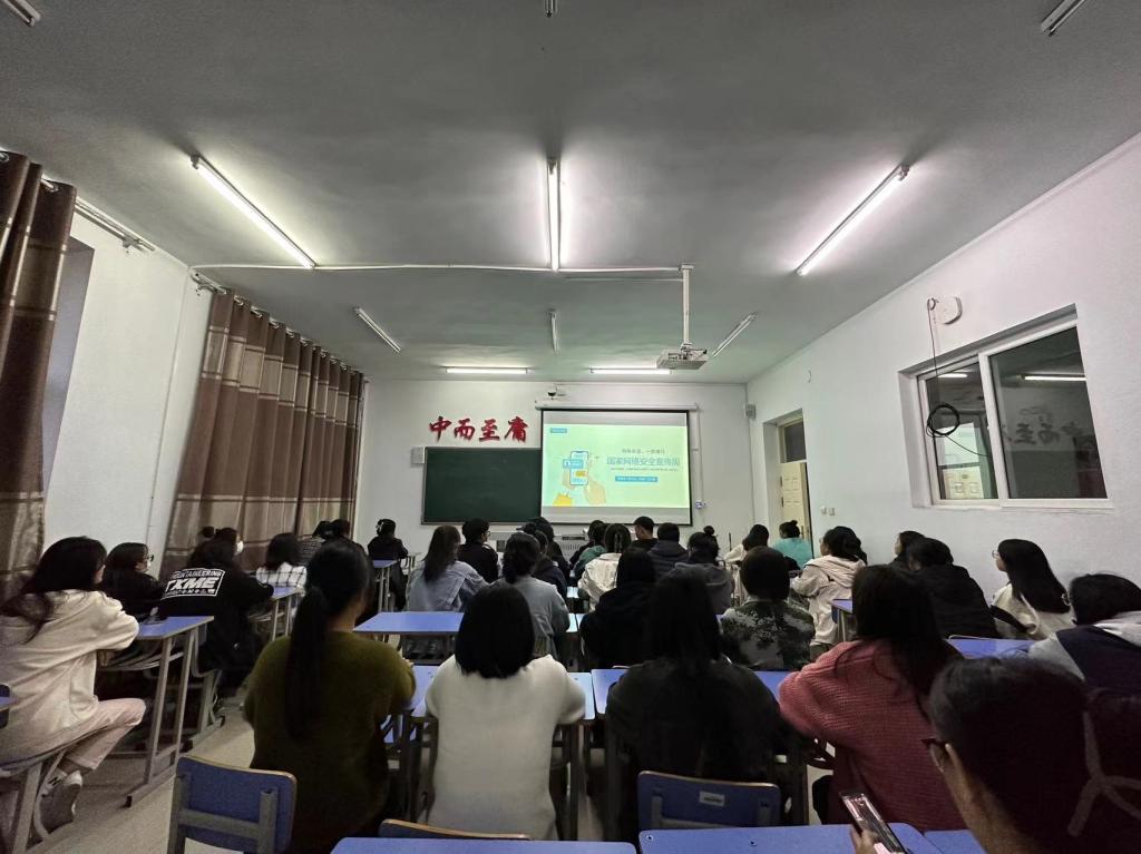 活动伊始,由团支书李欣儒向同学们宣讲网络安全知识,网络给我们平静如水的生活增添了清新亮丽的色彩,使我们开阔了眼界,增长了知识,但沉迷网络,其危害是不可低估的。接着团支书李欣儒运用知识竞答的方式,让学生了解了更多网络安全知识。通过团支书李欣儒的宣讲,提升了同学们分辨网络安全隐患的能力,正确使用网络资源的能力、合理使用网络的自控能力。至此,此次活动结束。