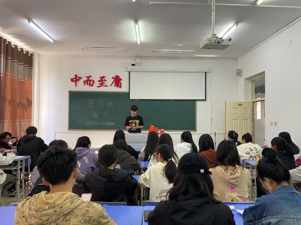 为鼓励同学们积极主动地讲普通话,积极推广普通话的习惯,营造良好的语言文字环境。护理学212班于2023年9月12日 在1#1205开展“推广普通话”主题团活。本次班会由团支书杨志强主持。护理学212班组队同学参加此次活动。