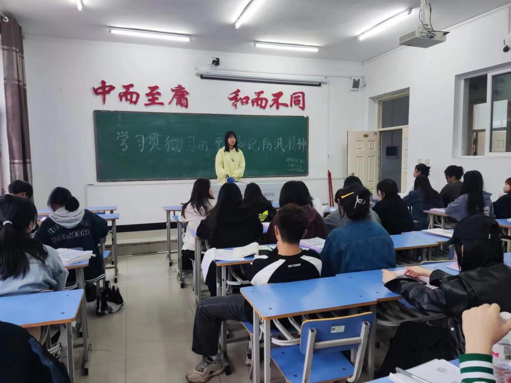 会议开始,团支书蒋文卓向同学们分享了《学习贯彻习近平总书记关于防汛救灾的重要指示精神》的文件,在文件中,学习到了各层人民的贡献力量。然后,团支书蒋文卓讲解了在防汛救灾中涌现的团员青年先进典型,展现了他们的感人事迹和崇高精神,不怕吃苦、甘于奉献的精神风貌。最后,团支书蒋文卓鼓励同学们学习先进典型身上的优点。