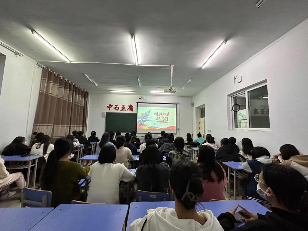 活动开始,由团支书李欣儒为同学们讲述抗日战争胜利纪念日的意义,中国人民抗日战争胜利纪念日不仅是一个节日,更是一个教育。它教育我们要牢记历史,珍惜和平,维护国家主权和领土完整,捍卫民族尊严和人权,反对一切形式的侵略和战争。这场战争,展现了中国人民不屈不挠、艰苦奋斗、团结抗敌、自强不息的伟大精神。通过此次活动讲述同学们为此向英雄烈士致敬,向为和平奋斗的人们致敬,更深刻地了解和感受中国人民抗日战争胜利的艰辛和伟大。