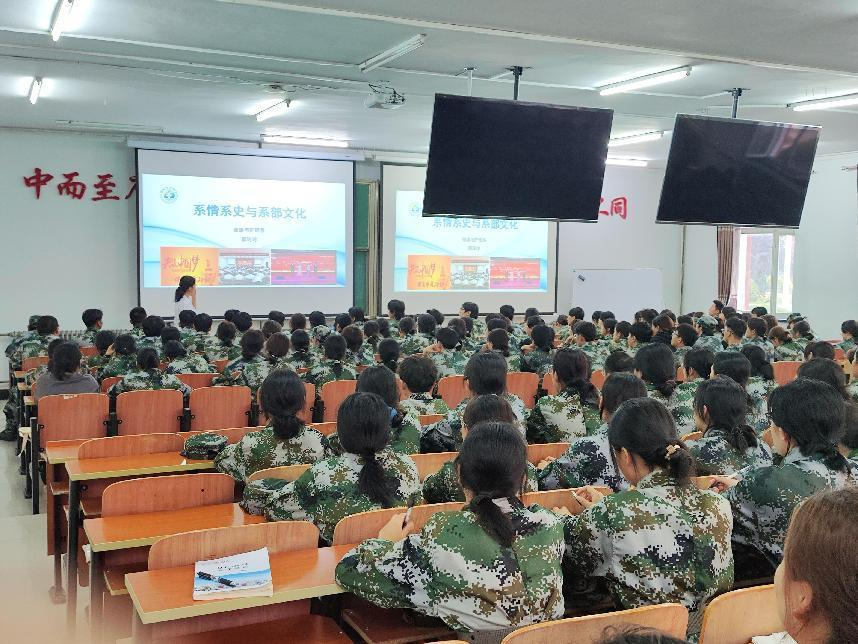 在8月31日晚上6点,健康与护理系主任郭玲玲在一号教学区1101召开了系部第一课--系情系史与系部文化会议。
