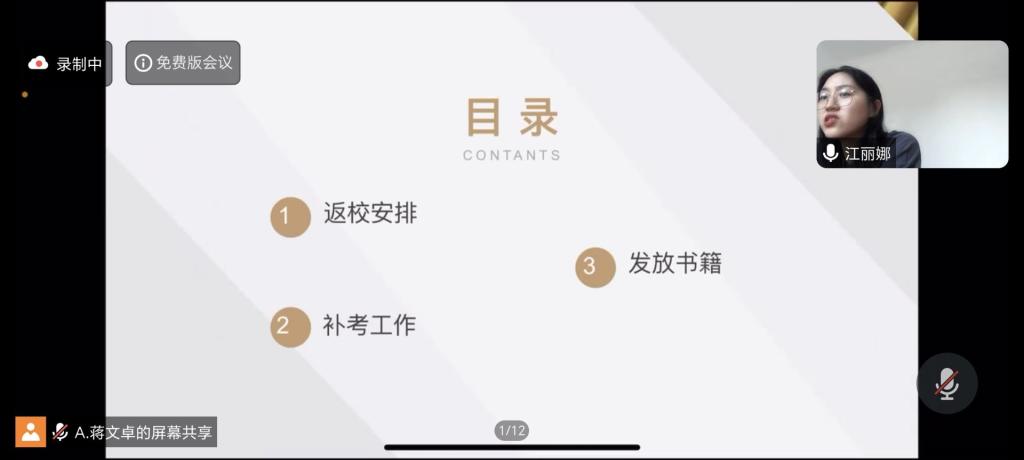 2023年8月14日,助产学2121班在腾讯会议召开“专业实践学期总结”主题班会,本次会议由辅导员江丽娜主持,助产学212全体同学参加。